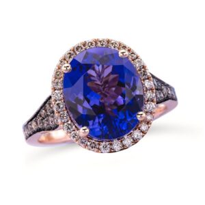 Ring featuring 4 1/2 cts. Blueberry Tanzanite , 1/3 cts. Chocolate Diamonds , 3/8 cts. Nude Diamonds set in 14K Strawberry Gold